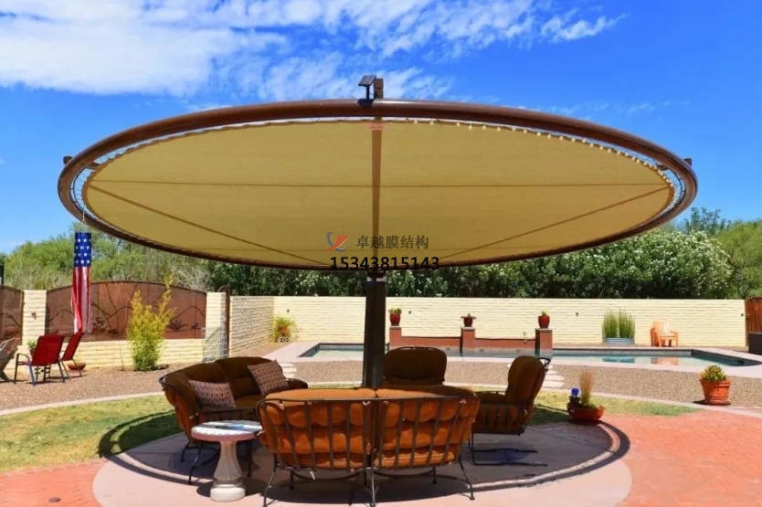 景觀遮陽棚、景觀連廊及景觀標(biāo)識建筑等。這就不得不提膜結(jié)構(gòu),作為新型的建筑材料和設(shè)計概念的結(jié)合體,膜結(jié)構(gòu)已占據(jù)了公共場所的建設(shè)中的一席之地。