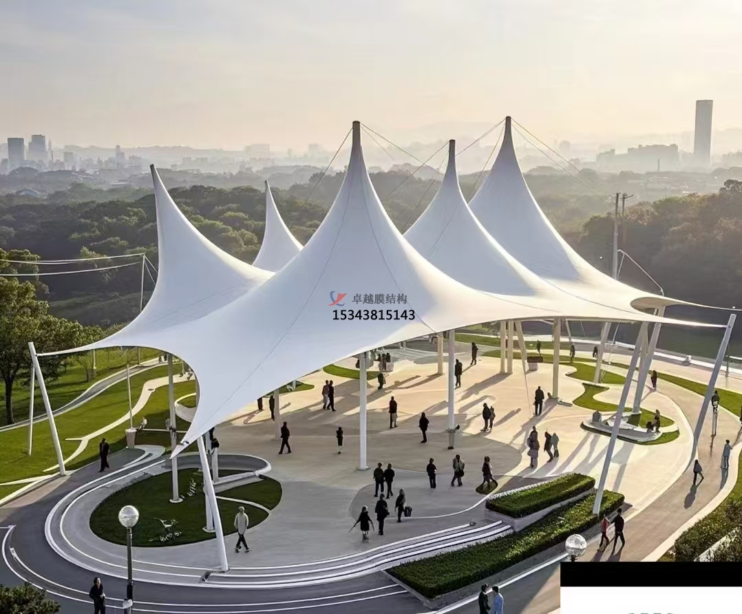 膜結(jié)構(gòu)具有高度的可塑性和適應(yīng)性,可根據(jù)場地的大小和形狀進(jìn)行設(shè)計,使休閑廣場將建設(shè)具有更大的靈活性。