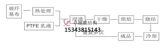 制作膜材的過程中,玻纖布需要進行多次浸漬,而且要適當(dāng)控制每次浸漬的樹脂量,過少會達不到產(chǎn)品的性能要求,過多則在燒結(jié)后容易出現(xiàn)龜裂現(xiàn)象。
