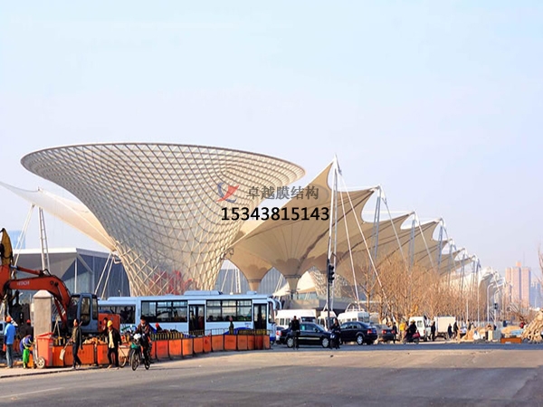 ?。?)西藏PTFE膜結(jié)構(gòu)的更大特點是強度高,中等強度的PTFE 膜厚度僅0.8mm,但它的拉伸強度已達到鋼材的水平;而且彈性模量較低,有利于膜材形成復(fù)雜的曲面造型;