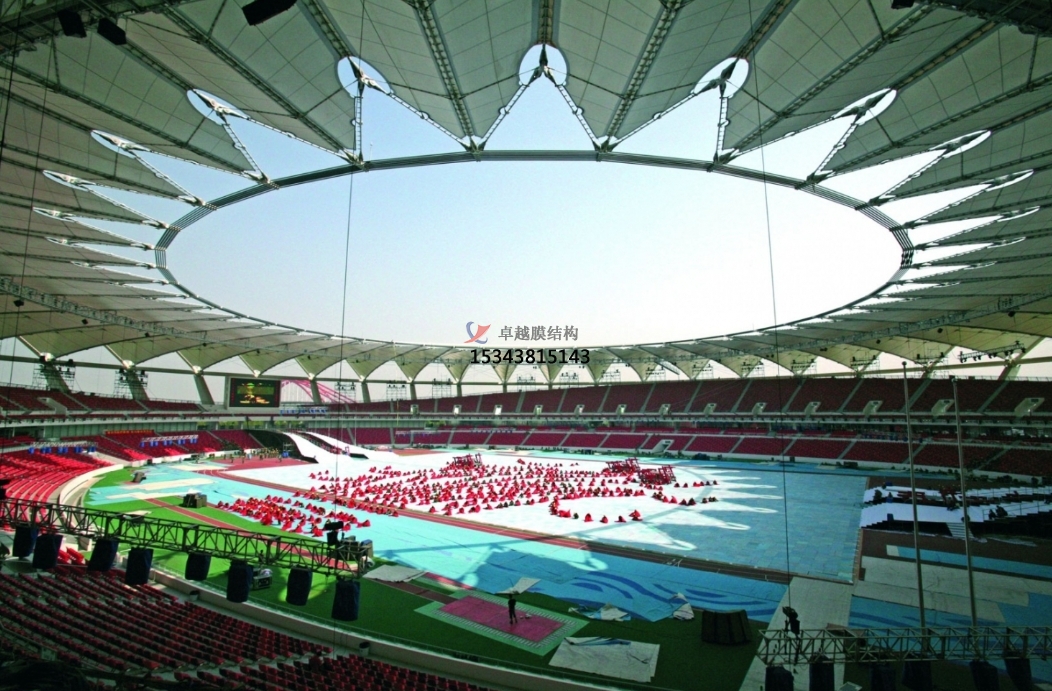 膜材柔軟,可塑性強,可以被拉伸成為各種動態(tài)感強的形狀,配合膜結構可以實現(xiàn)各種突破傳統(tǒng)模式的造型,豐富多樣,極具現(xiàn)代美。還可以創(chuàng)造大面積無柱覆蓋的空間。
