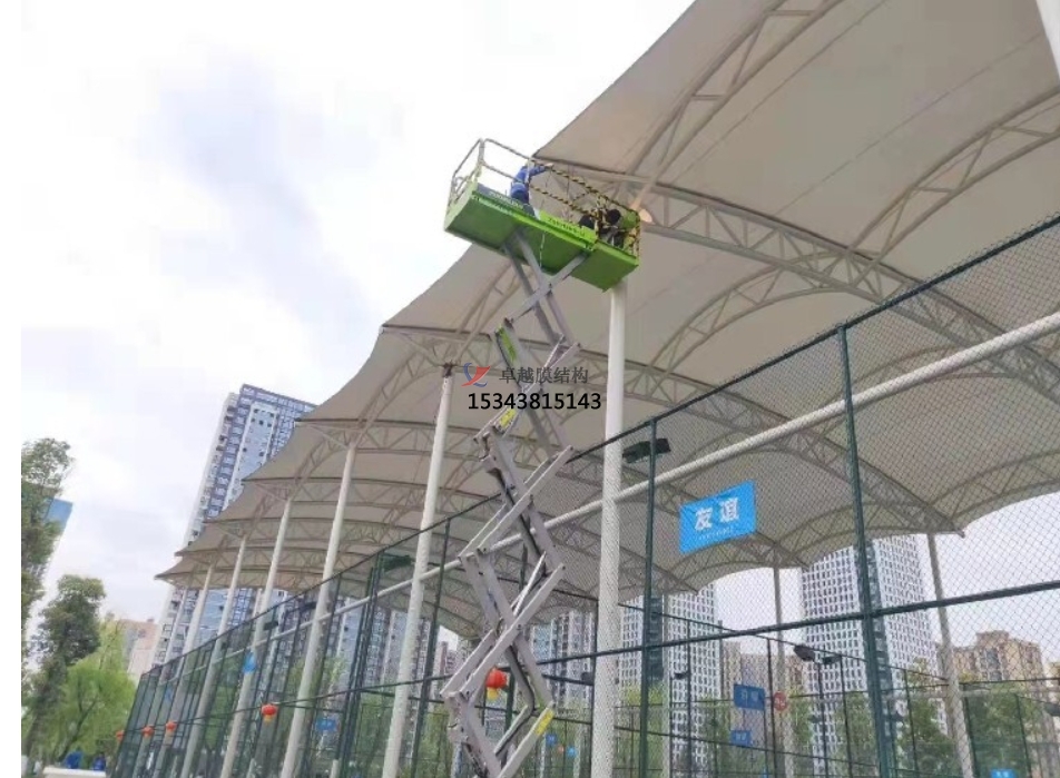 膜結(jié)構(gòu)材料具有較好的耐久性和自潔性。一般情況下,只需要定期進行簡單的清潔和檢查,不需要像傳統(tǒng)建筑結(jié)構(gòu)那樣頻繁地進行大規(guī)模的維修和保養(yǎng)。選擇具有自潔性的膜材,表面的自潔涂層可以在雨水的沖刷下自動清潔灰塵和污漬,大大降低了維護成本。