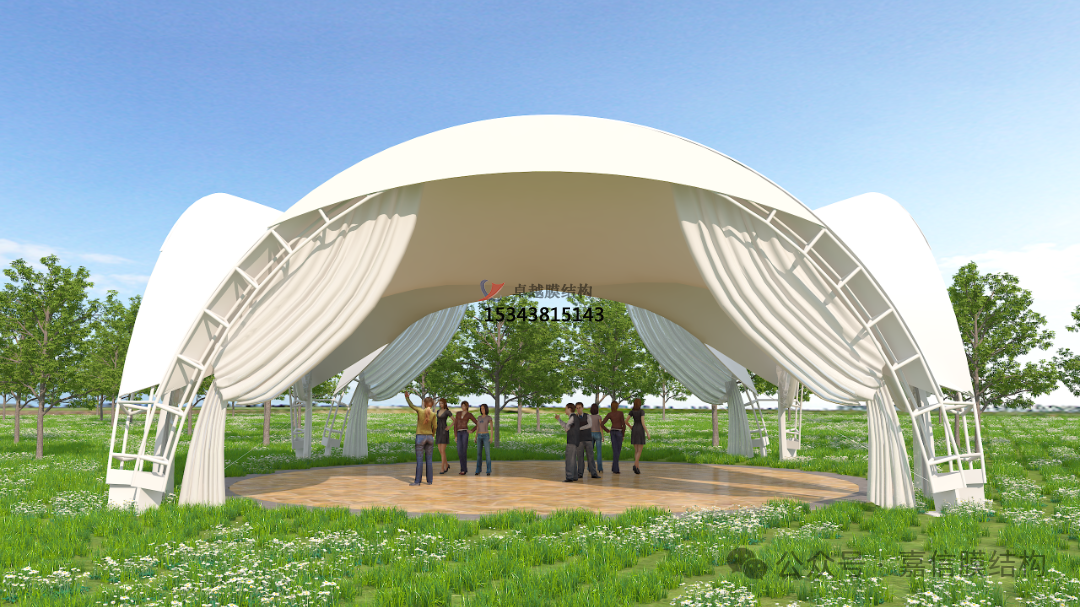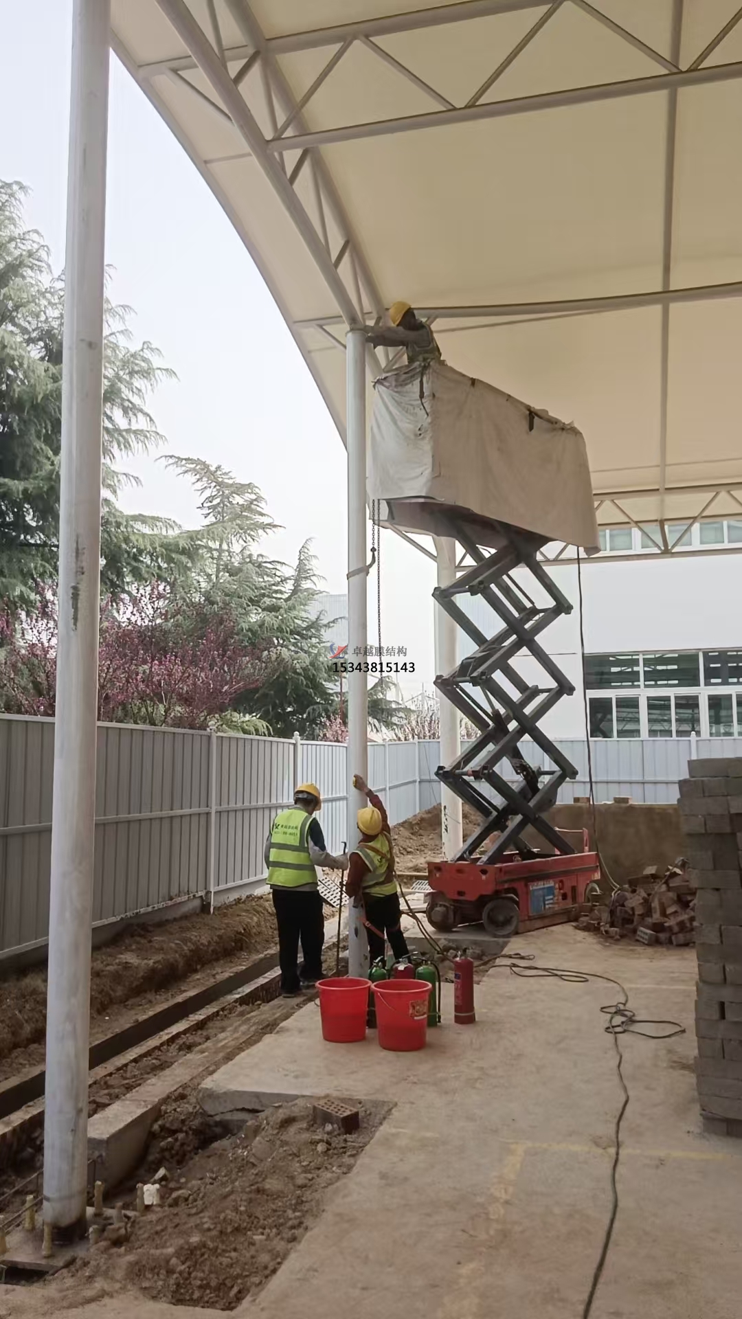 ?。和ㄟ^專用的張拉設(shè)備,如千斤頂、手拉葫蘆等,對(duì)膜材進(jìn)行張拉。張拉過程中要按照設(shè)計(jì)要求的拉力和順序進(jìn)行,逐步調(diào)整膜材的張力,使其達(dá)到設(shè)計(jì)的形狀和預(yù)應(yīng)力狀態(tài)。在張拉過程中,要使用測量儀器實(shí)時(shí)監(jiān)測膜材的變形和張力情況,確保張拉均勻、準(zhǔn)確。張拉完成后,將膜材邊緣與支撐結(jié)構(gòu)進(jìn)行最終固定,如通過螺栓緊固、焊接等方式,確保膜結(jié)構(gòu)在使用過程中不會(huì)出現(xiàn)松動(dòng)或位移。