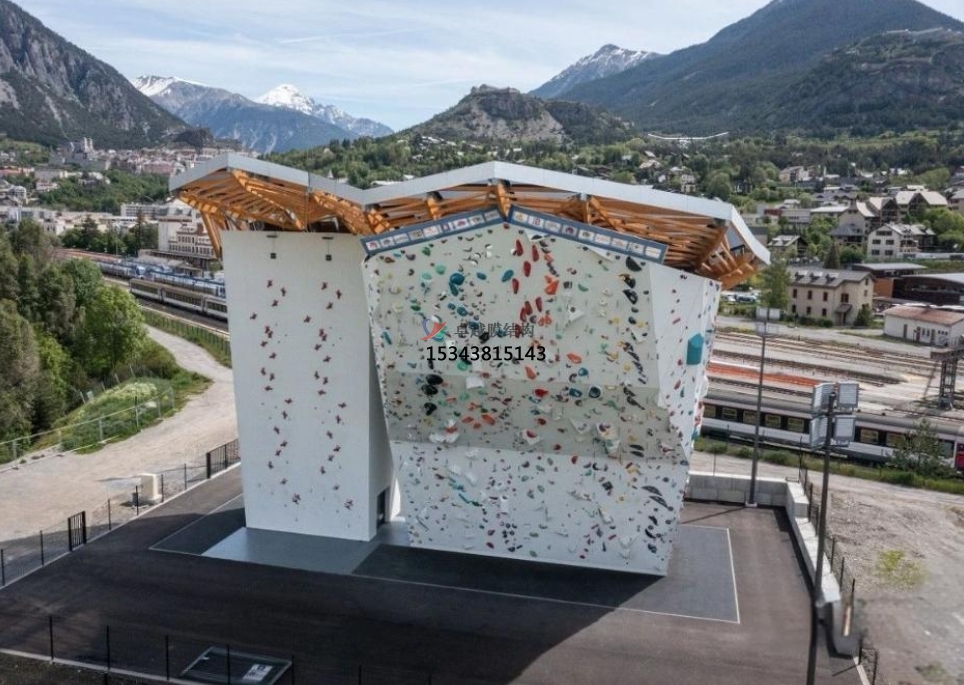 由建筑師Grégory Poles及其6B建筑事務所設計,這座攀巖塔提供了超過1000平方米的攀巖面積和130條線路,覆蓋了三大攀巖競賽項目——難度攀巖、速度攀巖和抱石攀巖。建筑以一根鋼支柱為核心,支撐著多個攀巖面,其頂部設有木質(zhì)屋頂結構,并覆蓋法拉利STFE“軟玻璃”膜材。這一設計確保攀巖者無論天氣如何都能進行訓練和比賽。