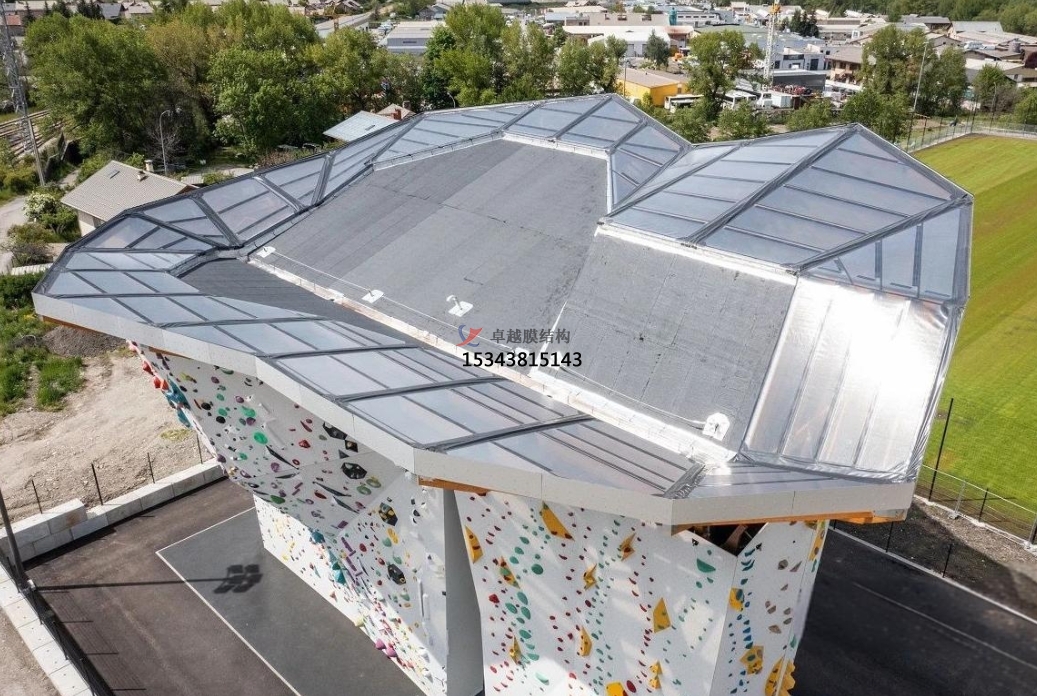 STFE膜材是新一代柔性建筑材料,具有出色的透光性,阻隔有害紫外線且具有遮陽透景功能,大大減少空間封閉感,同時以其高強度和輕量特性著稱。它能夠覆蓋大跨度結構,從而減少對輔助支撐結構的需求。配備STFE屋頂?shù)?ldquo;巢”,讓攀巖者能夠全年無休地體驗戶外攀巖的樂趣,大幅提升了這一場地的吸引力。