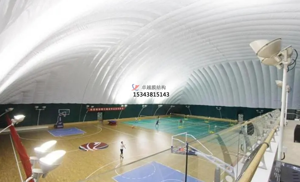 充氣膜結(jié)構(gòu)籃球場:以特別建筑膜材為外殼,經(jīng)過智能化機電設(shè)備在內(nèi)部供給正壓支撐氣膜。具有跨度大、外觀優(yōu)美、隔熱環(huán)保、工期短等特點,為籃球運動供給了全新的空間體驗。