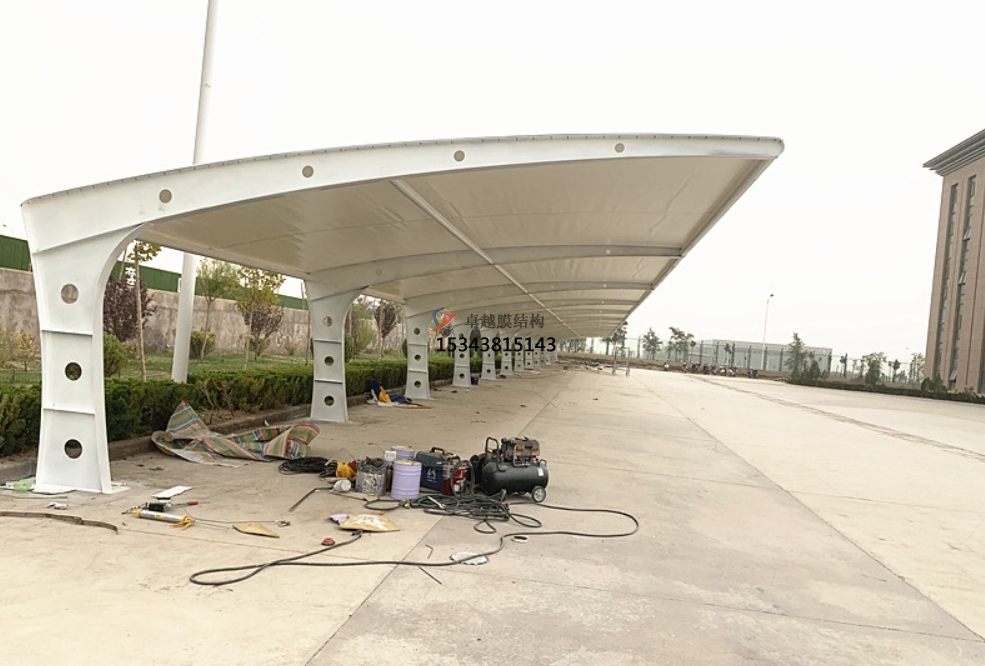 膜結(jié)構(gòu)雨棚以其流線型的外觀和多樣的造型,成為城市景觀中的一道亮麗風景線。無論是簡約的拱形設(shè)計,還是復(fù)雜的立體造型,膜結(jié)構(gòu)雨棚都能與周圍環(huán)境和諧相融,提升充電站的整體美感。