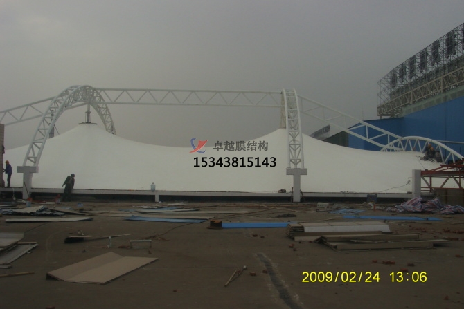 更后:商業(yè)街膜結構穹頂?shù)闹饕獦嫵捎心げ?,鋼結構(Q235、無縫焊管、高頻焊管、H型鋼等),更主要的特性重量輕、強度高、防火難燃、自潔性好,不受紫外線影響、抗疲勞、耐扭曲、耐老化、使用壽命長。具有高透光率,熱吸收量很少。正是因為這種跨時代的膜材料的發(fā)明,使膜結構建筑成為現(xiàn)代化的永久性建筑。