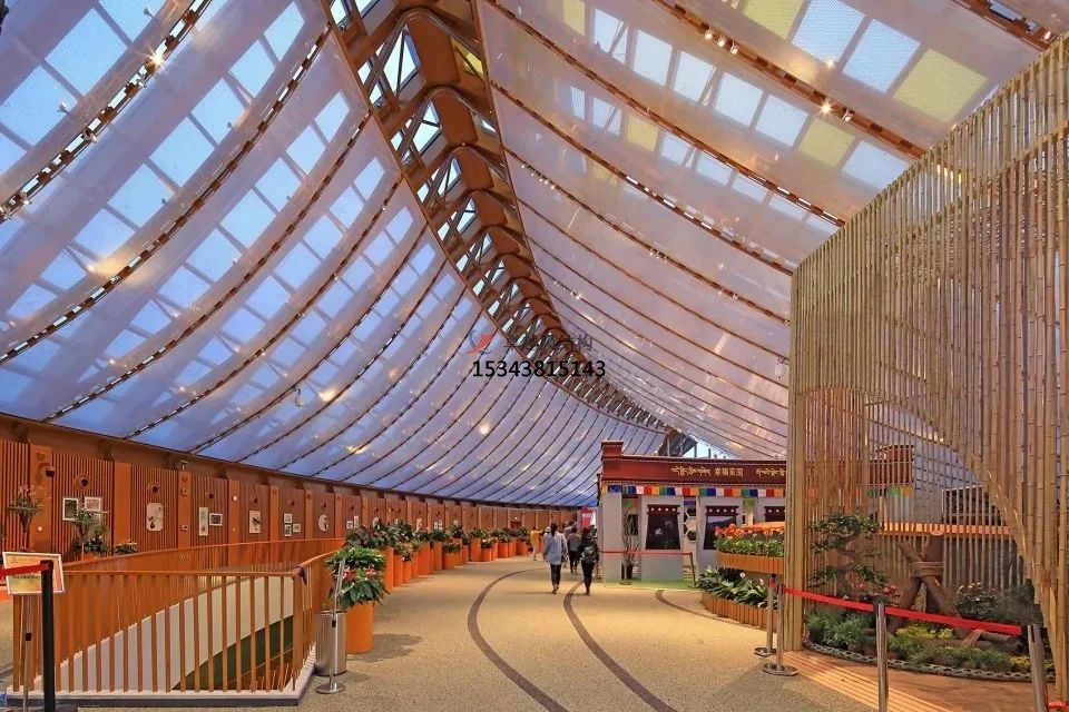 張拉膜結(jié)構遮陽棚能夠遮擋陽光中的紫外線,減少商業(yè)街區(qū)的陽光直射,改善商業(yè)街區(qū)的環(huán)境。同時,膜結(jié)構遮陽棚的透光性能較好,不影響商業(yè)街區(qū)的采光,為行人提供一個舒適、自然的購物環(huán)境。