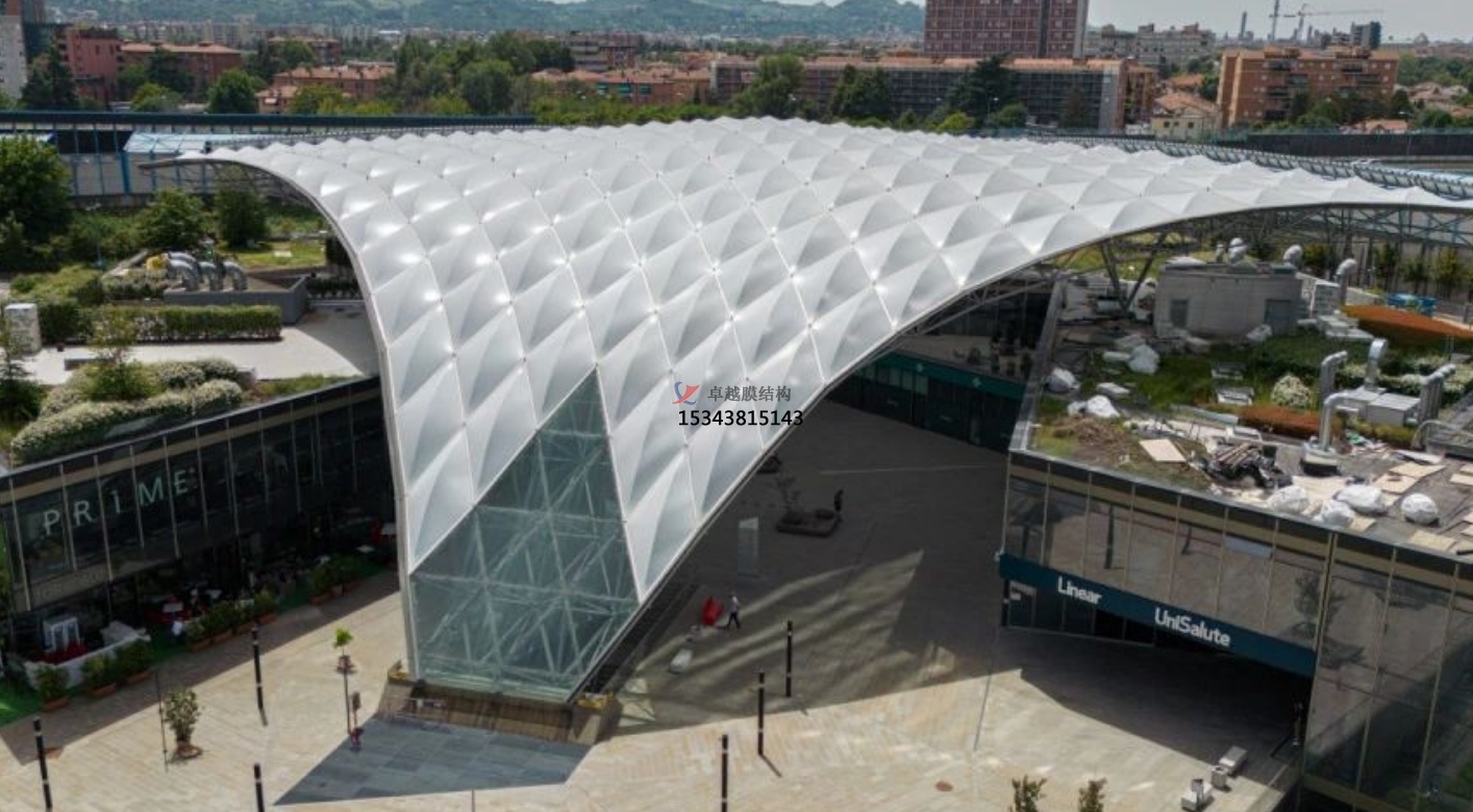 膜結(jié)構(gòu)雨棚在雨季為商場(chǎng)帶來了更好的顧客體驗(yàn),同時(shí)也有利于商場(chǎng)經(jīng)營(yíng)和節(jié)能環(huán)保。