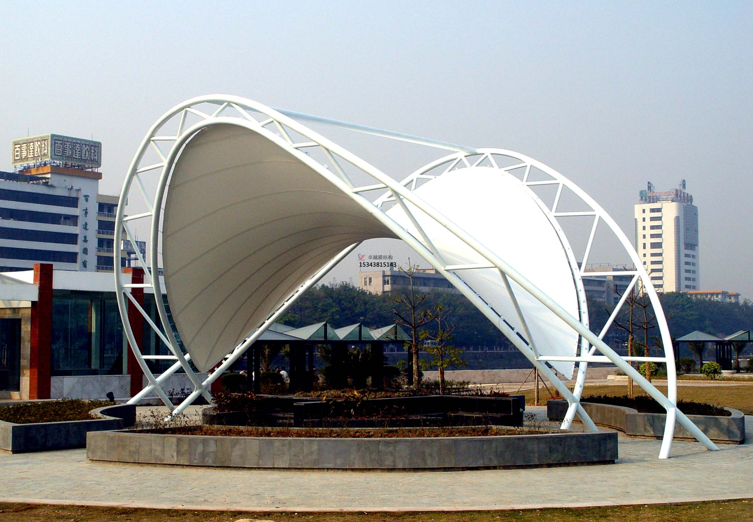 7) 張拉膜景觀設(shè)計中,除了保證結(jié)構(gòu)體系的整體穩(wěn)定外,還應(yīng)保證在局部膜片破壞或局部索推出工作時不致引起結(jié)構(gòu)整體失效。由于膜材在拉力作用下存在松弛、徐變等問題,張拉式張拉膜景觀在正常使用1~2年后需要進(jìn)行第次張拉,結(jié)構(gòu)設(shè)計時應(yīng)考慮兩次張拉對結(jié)構(gòu)整體的影響。
