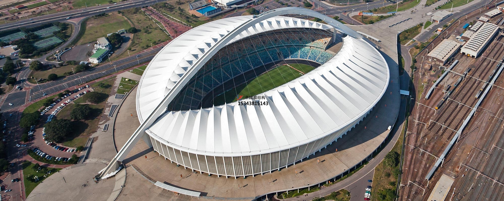 索膜結(jié)構(gòu)體育場館核心結(jié)構(gòu)特性:索膜結(jié)構(gòu)由高強度柔性膜材(如PTFE、ETFE)與鋼索、桁架等加強構(gòu)件組成,通過預(yù)張應(yīng)力形成空間曲面,兼具輕量化與大跨度優(yōu)勢。在技術(shù)方面,具有自重輕、透光性和造型靈活等特點。膜材密度低,可大幅減輕主體結(jié)構(gòu)荷載,自然光滲透減少照明能耗,造型靈活,可實現(xiàn)復(fù)雜曲面設(shè)計(如馬鞍形、擬合圓形)。