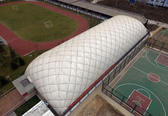 4. 普通的氣膜沒有鋼纜或者只有縱橫鋼纜的加固,抗風雪的能力弱,事故率高,不能作為永久建筑使用;只有斜向網(wǎng)狀鋼纜系統(tǒng),可以確保氣膜的抗風雪性能,也是好的可作為永久建筑使用的氣膜。