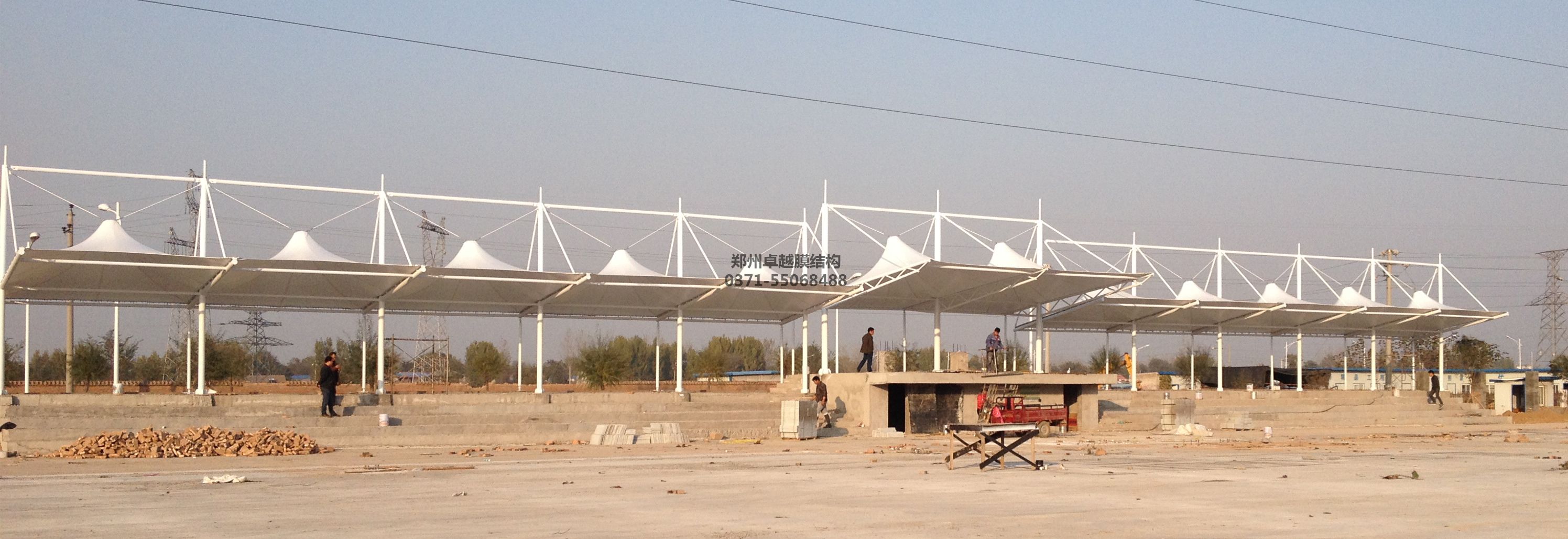 卓越案例——濮陽濮東新區(qū)中學操場膜結構看臺,地址濮陽市中原西路浦東新區(qū)中學,完工時間2016年3元
