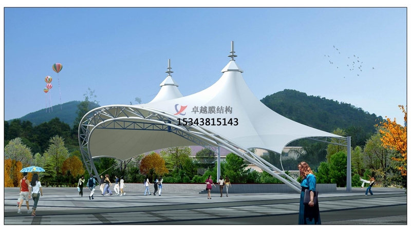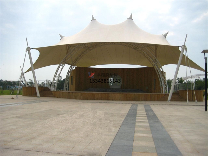 四、舞臺膜結構具有膜結構建筑的所有優(yōu)點:外觀雅致飄逸,空間開闊靈透、結構輕致、透光阻燃、自潔性好、安裝快、節(jié)能降耗、造價適中、維修便捷。