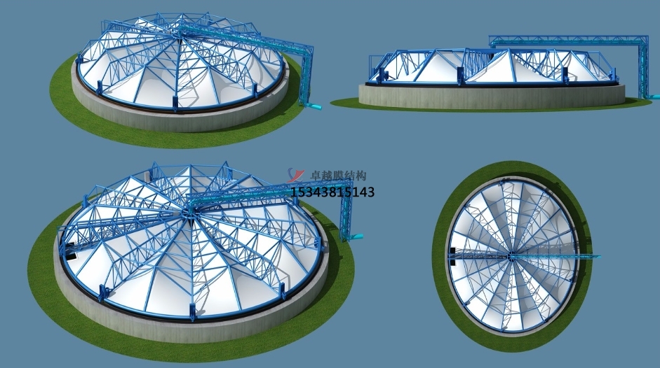 鋼結(jié)構(gòu)制作和膜體的加工都在工廠進(jìn)行,加工質(zhì)量得到可靠保障?,F(xiàn)場(chǎng)安裝時(shí)間短,減少了對(duì)場(chǎng)地的占用。尤其是舊池體改造項(xiàng)目可采取結(jié)構(gòu)整體吊裝,不影響池體內(nèi)部的設(shè)備運(yùn)轉(zhuǎn)。