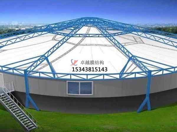污水池加蓋核心作用:環(huán)保合規(guī)性,污染控制,安全防護,提升處理效率,美化與協(xié)調(diào)性。環(huán)保符合國家政策要求,新建及現(xiàn)有污水池需加蓋以收集處理惡臭氣體,尤其針對重點行業(yè)VOCs排放濃度超標(biāo)的池體。密封有害氣體(如硫化氫、氨氣、VOCs),減少異味擴散及污水泄漏風(fēng)險,降低對空氣、土壤和水體的污染。防止有害氣體直接威脅操作人員健康,避免可燃?xì)怏w聚集引發(fā)安全隱患。穩(wěn)定池內(nèi)溫濕度環(huán)境(如北方冬季保溫),保障微生物活性,優(yōu)化污水處理效果。通過蓋板顏色或結(jié)構(gòu)設(shè)計(如膜材曲面造型),使污水池與周邊環(huán)境協(xié)調(diào),改善工業(yè)設(shè)施外觀。具體的加蓋方案需結(jié)合池體跨度、腐蝕性環(huán)境及預(yù)算條件選擇材料(如大跨度優(yōu)先反吊膜,強腐蝕場景適用全PP/玻璃鋼)。