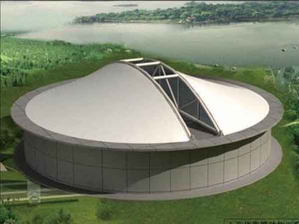 鋼支承反吊膜結構具有耐久、安全、安裝快捷檢修方便、美觀、經(jīng)濟等特點,比傳統(tǒng)的普通碳鋼骨架+陽光板和不銹鋼骨架+玻璃鋼板的優(yōu)勢比較突出,在污水處理池和沼氣池覆蓋上面很值得推廣。所以說,污水池加蓋的最佳選擇——鋼支撐反吊膜結構