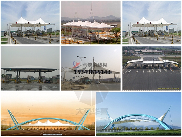 收費站膜結(jié)構(gòu),一般是指安裝在收費站的膜結(jié)構(gòu)頂棚。膜結(jié)構(gòu)頂棚因其自重輕,具有良好的受力特點,所以成為大跨度空間結(jié)構(gòu)的主要形式之一,收費站膜結(jié)構(gòu)也屬于其范疇。