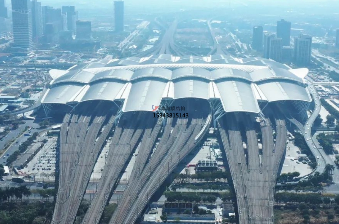 高鐵站膜結(jié)構(gòu)是一種采用高強(qiáng)度高耐久性的膜材料作為覆蓋層,并通過鋼索、鋼架等支撐體系構(gòu)成的空間結(jié)構(gòu)。這種結(jié)構(gòu)在高鐵站建設(shè)中具有顯著的優(yōu)勢和應(yīng)用價(jià)值。