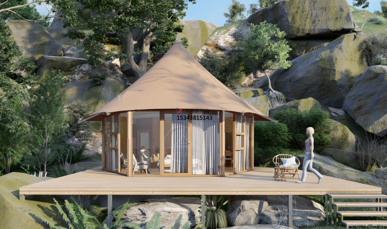 戶外活動:膜結(jié)構(gòu)篷房通常用于戶外酒店、臨時住所。它們能提供人們在外游玩時有遮陽避雨的地方,可設(shè)計用于容納大量人群。
