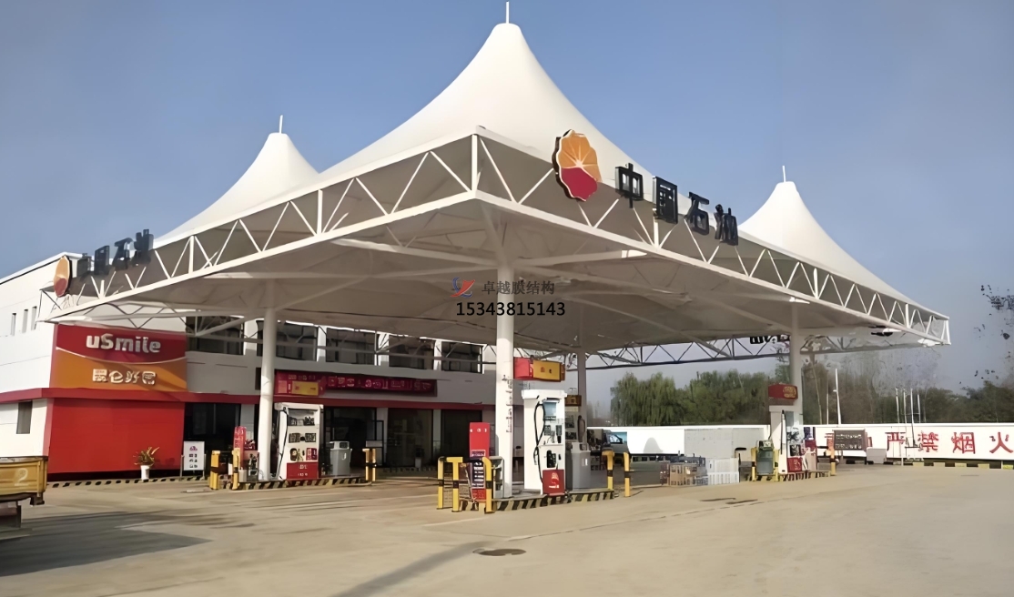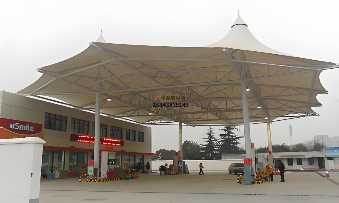 2. 抗風(fēng)防震:膜結(jié)構(gòu)頂棚設(shè)計科學(xué),可承受高達(dá)每平方米2000千克的均布荷載,抗風(fēng)等級達(dá)到10級,同時具備良好的抗震性能,確保加油站即使在極端天氣條件下也能安全穩(wěn)定運(yùn)行。
