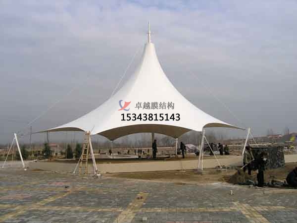 一個(gè)城市的中心區(qū)反映一個(gè)城市的地理風(fēng)貌和民族風(fēng)情,同時(shí),也是一個(gè)城市文化發(fā)展程度的標(biāo)志。而景觀設(shè)計(jì)要求其具有廣泛的可讀性、雅俗共賞,既有超凡脫俗的藝術(shù)價(jià)值,又能使大眾喜聞樂(lè)見(jiàn)與大眾息息相通。膜結(jié)構(gòu)以其輕盈飄逸的造型、柔美并帶有力量的曲線和大跨度和大空間的鮮明個(gè)性和標(biāo)識(shí)性,應(yīng)用于城市小品設(shè)計(jì)中。