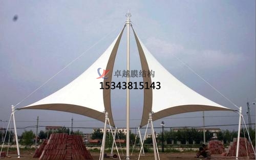 自清潔:建筑用膜材料表面無靜電,對灰塵無吸附力,不易灰化,即使風(fēng)雨也容易被風(fēng)吹走去除它被撣掉了。因此,膜結(jié)構(gòu)景觀總是出現(xiàn)在我們的視野中,具有明亮的表面。 張拉大跨度:大-s可以建造沒有中間支撐柱的平臺建筑物。一些大型公共活動場所,體育館,需要在室內(nèi)形成無柱,大面積的開放空間,這對建筑師來說是一個大問題。采用膜結(jié)構(gòu)景觀屋頂,大大簡化了問題。因為每單位面積的膜非常輕,所以骨架的重量大大減少。如有需要,室內(nèi)和室外空氣之間的輕微壓差可用于支撐非常輕的屋頂。