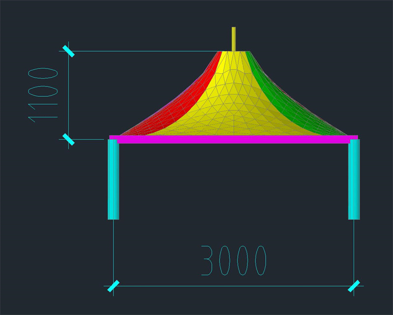 此圖為七彩滑道頂部遮陽棚單帽圖紙。