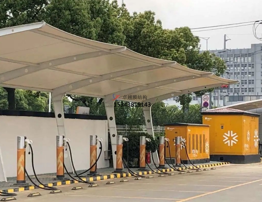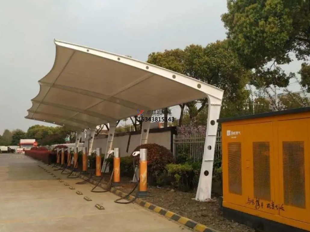 加氣站膜結構雨棚是一種現(xiàn)代化的建筑形式,它采用高強度、高耐久性的膜材料,通過一定的技術手段和結構設計,形成一種具有獨特美學效果和實用功能的建筑形式。這種結構形式在加氣站的應用中,不僅可以提供寬敞、明亮的加油環(huán)境,還能有效地抵御各種惡劣天氣,提高顧客的舒適度和安全性。