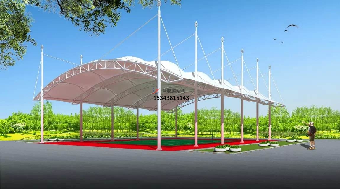 結構類膜結構體育館的主要構成部件就是膜材料、鋼結構和鋼索,不同的膜材和鋼索,其性能及價格各不相同。結構類造型可分為以下二類: