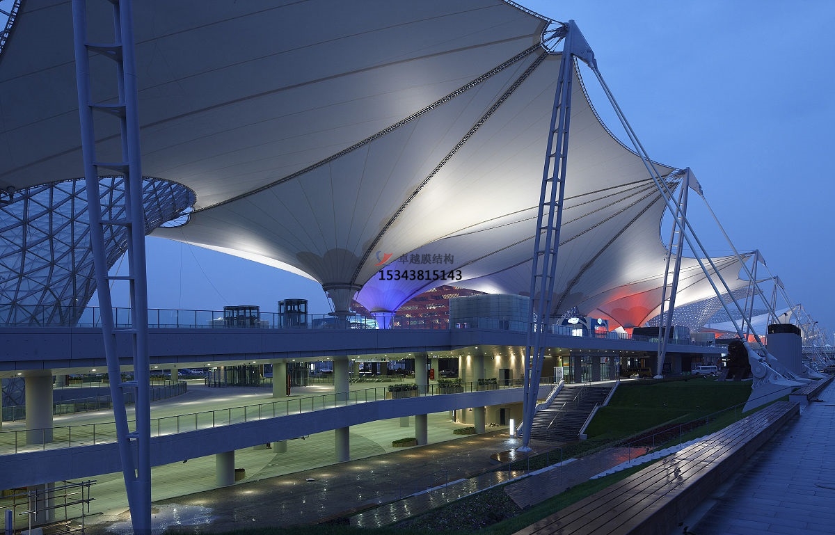 四、建筑膜結(jié)構(gòu)罩棚在結(jié)構(gòu)的穩(wěn)定性,耐久性、抗風(fēng)性、抗雨雪性對比傳統(tǒng)的彩鋼板有著不可比擬的優(yōu)勢,膜結(jié)構(gòu)本身的應(yīng)力結(jié)構(gòu)在遇到雨雪天氣膜結(jié)構(gòu)本身的結(jié)構(gòu)特性也可以保證其大跨度的抗壓穩(wěn)定性。