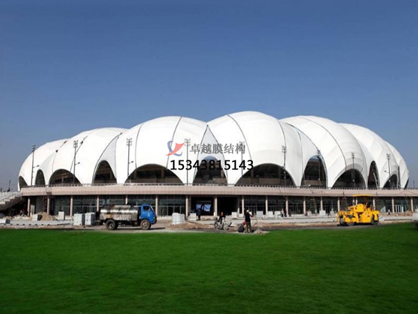 膜結(jié)構(gòu)是一種建筑與結(jié)構(gòu)完美結(jié)合的結(jié)構(gòu)體系;它是用高強度柔性薄膜材料與支撐體系相結(jié)合形成具有一定剛度的穩(wěn)定曲面,能承受一定外荷載的空間結(jié)構(gòu)形式;這種結(jié)構(gòu)形式特別適用于大型體育場館、人口廊道、小品、公眾休閑娛樂廣場、展覽會場、購物中心等領(lǐng)域。