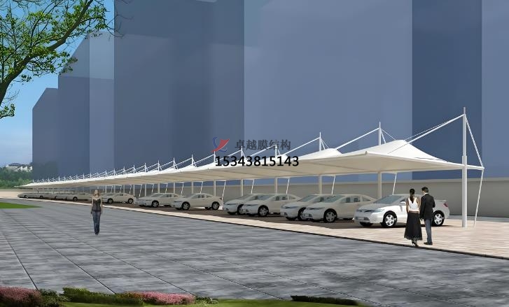 有獨(dú)特的藝術(shù)美感,為城市增添亮麗風(fēng)景線。高強(qiáng)度膜材配合張拉技術(shù),使車棚抵御風(fēng)雨能力強(qiáng),膜材料還具有高強(qiáng)度、耐候性、防火性和自潔性,有的采用永久性膜材,使用壽命可達(dá)25年