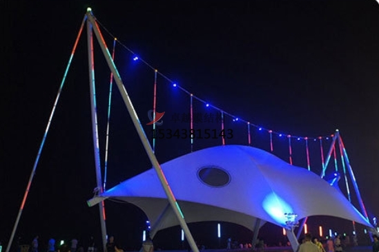 由于膜材具有一定的透光率白天可減少照明強度和時間能很好地節(jié)約能源,呈現(xiàn)富于變幻、新奇誘人的視覺效果。