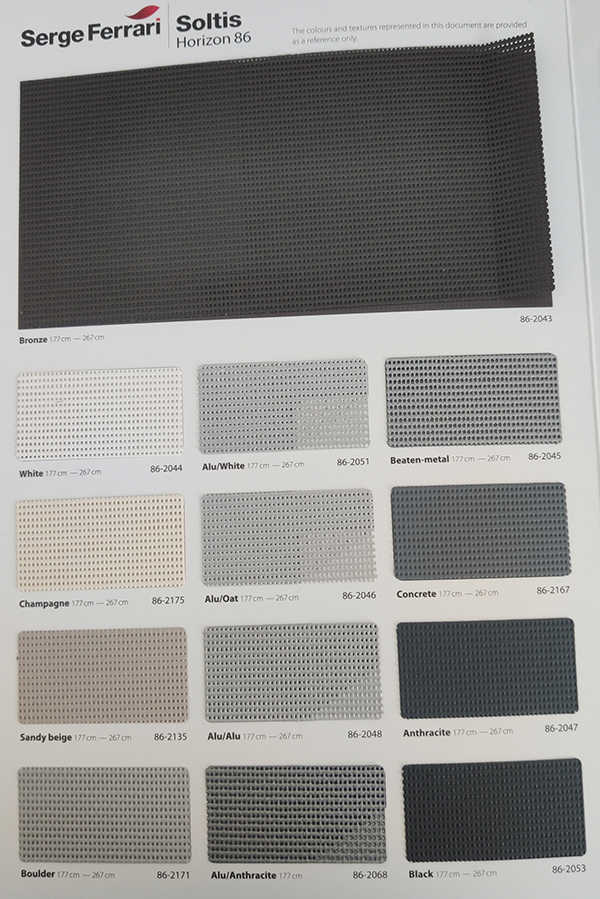 紗帝飾:紗帝飾面料為抵擋熱量和光線的真正盾牌,依靠其微型通風(fēng)結(jié)構(gòu),調(diào)節(jié)陽光的熱效應(yīng),有效地防眩目。紗帝飾面料具有46種顏色,可為所有建筑,無論是 公眾場(chǎng)合還是私人住宅提供配套的眾多色彩和多種用途。法拉利預(yù)應(yīng)力專利制造技術(shù)給紗帝飾織物帶來尺寸恒定,不會(huì)變形,無需加固自然抗撕拉,耐久和抗塵,占 地面積小等獨(dú)有特性,更顯出紗帝飾面料對(duì)建筑物技術(shù)性遮陽無可匹敵的優(yōu)勢(shì)。