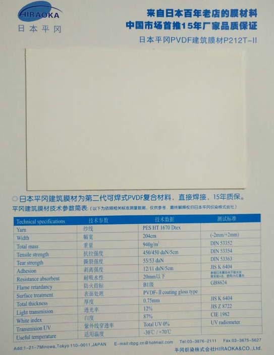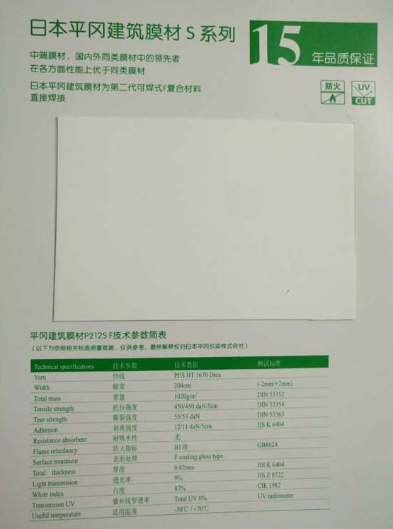 日本平岡建筑膜材中國(guó)市場(chǎng)很好的推系列: